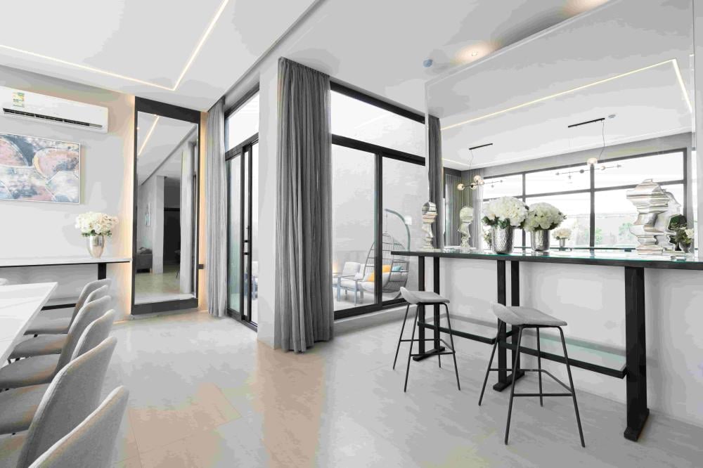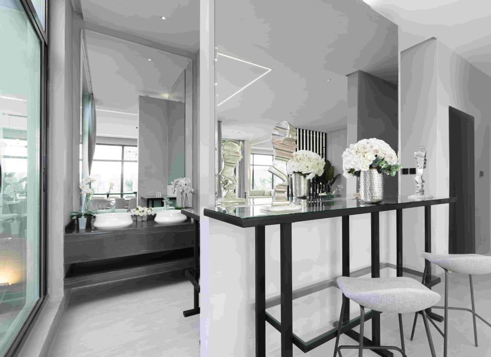 • – مطبخ مع بار خدمة مع ثلاجة – مايكروويف